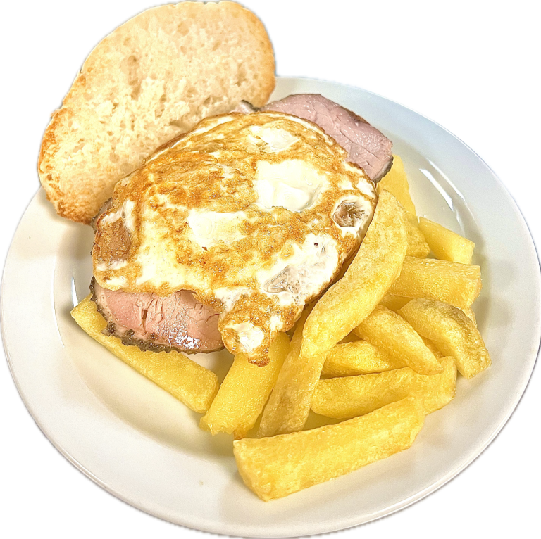 - Mollete CastellanoLomo de orza finas hierbas y huevo frito (con p. fritas).