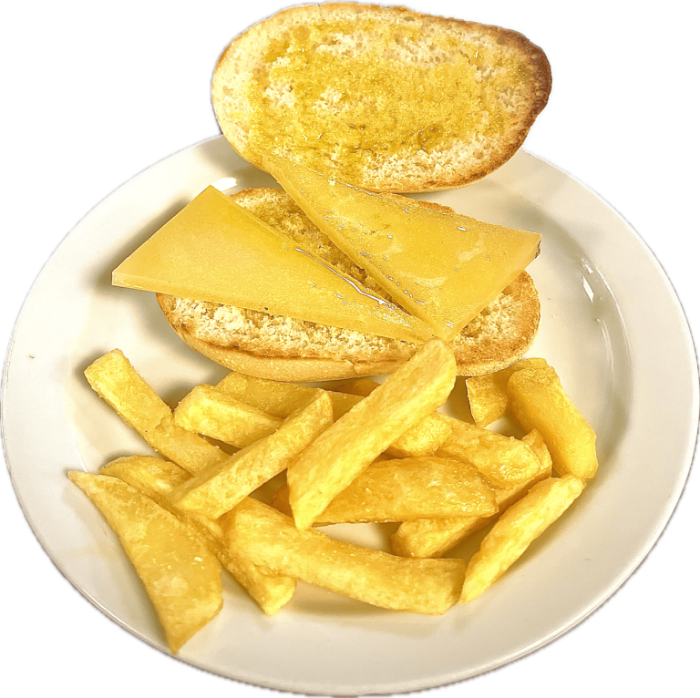 - Mollete ManchegoQueso curado manchego con aceite de oliva (con p. fritas).